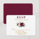 Elegant Watercolor Burgundy Marsala Blommigt Greenery Bröllop OSA Card omfattar peonier, eukalyptus löv och andra vackra greer. Guld-skript.