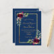 Burgundy blommigt guld greenery boho blue bröllop vykort