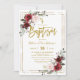 Burgundy Blommigt Guld Ram Fotobaptism Inbjudningar