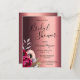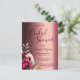 En modern och elegant Inbjudningskort för möhippan. Faux metallisk tittar bakgrund av koppar. Dekorerad med blommor av mörkens lila och av burgundy och ro rosa. Mallar för namn, duschens datum och ställe. Texten: Möhippan är skriven med ett stort stil-skript, svart färgad brev. Baksida: Bakgrund till en faux-metallisk tittar av koppar