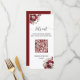 Burgundy Blommigt Modern QR-kod 4x9' Bröllop-meny Meny