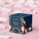 Personligens möhippa-faverbox med Burgundy röd blommigt, guld handskript med bridens namn och datum med text för vitt skript, typografi med typsnitt som trycks på en fast marin blå färg-bakgrund.