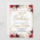Burgundy Blommigt och Guld Surprise 80:e födelseda Inbjudningar