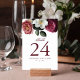 Burgundy Blommigt Ro Botaniska Bröllop Bordsnummer