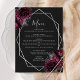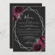 Burgundy Blommigt Silver Geometric Black Bröllop Meny