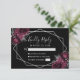 OSA kort i elegant bröllop har en silver-geometrisk ram som dekoreras med burguner och silver-blommigtar på svart bakgrund. I anpassadet kombineras silver grått med vismisk handskrift och kopparplåt typsnitt. Den omvända sidan är helsvart.