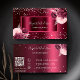 En burgundär bakgrund som dekoreras med burgunka och rosa blommigtar, blommor. Anpassa och lägg till namn och text framtill. Tillbaka: Mallar för namn, titel, mobilt nummer, e-post och webbplats adress, QR-kod till webbplatsen eller social-mediekontot. Perfekt för kvinnliga företagare, konsulter, företagsägare.