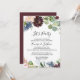 Denna burgundy blommiga grönska festliga inbjudan är perfekt för ett vinterbröllop. Den eleganta boho-designen har akvarellblå, rosablommiga och vinröda blommor med konstnärliga detaljer. Denna inbjudan kan användas för en förlovningsfest, pensionsfest, baby shower eller någon annan tillställning!