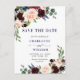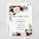 Burgundy Blue Blommigt Bröllop spara datum vykort.