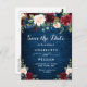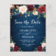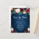 Burgundy Blue Blommigt Bröllop spara datum Vykort