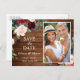 Burgundy Blue Rustic Bröllop spara datum-meddelande vykort.