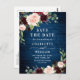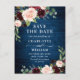 Burgundy Navy Blue Bröllop spara datum vycard.