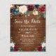 Burgundy Blue Rustic Bröllop spara datum Vykort