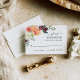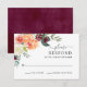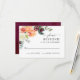 Färdigställ din svit med detta bröllops-svarskort med ett akvarellblommigt hörn i burgunder, rosenskiftande och varma hösttoner. “Vänligen svara” typografi känns klassisk och förfinad, med en ren layout för namn och närvarosvar. Perfekt för höst-, trädgårds- och vingårdsbröllop och lätt att anpassa.
