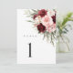Burgundy Blush Pink Floral Wedding Table Numbers