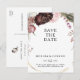 Burgundy Boho Blommig Rädda Datum Postkort Inbjudan Vykort