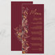 Lägg till en touch av bohemisk lantlig charm till din bröllopsfest med denna vackra meny. Den rustika boho chic-designen har en delikat spray av vilda blommor i nyanser av burgunderrött och guld. Personligad med era namn och bröllopsdatum under en stilren modern titel i skrivstil, är det det perfekta sättet att presentera er bröllopsmiddag med skönhet och elegans. Perfekt för ett höstbröllop.