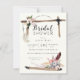 Boho arch med fjädrar, kristaller, pilar och blommor ram är ett härligt Inbjudningskort för möhippan. Baksida med ljusa burgundröd och pilar emblem. Perfekt för alla säsonger. Gästerna förväntar sig en roligt och ett unikt evenemang. Lite stollig, lite Western och lite rustik.