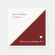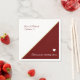 Ett litet och vitt hjärta i kärlek med bruden och brudgummen namn och speciella dagen... halv burgundisk bakgrund, diagonalt delad...