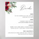 Menyn bröllop pub för bröllop firande med burgundisk och grön blommigt.