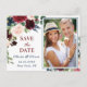 Burgundy Navy Blue Bröllop spara datum Announcement Postcard.