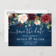 Burgundy Navy Blue Bröllop spara datum vycard.
