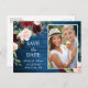 Burgundy Navy Blue Bröllop spara datum vycard.
