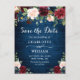Burgundy Navy Blue Bröllop spara datum vycard.