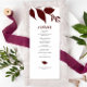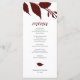 De här burgundiska menykorten i bröllop erbjuder en modern, minimalistisk design som innehåller enkla löv-accenter i en djup marongskugga - perfekt för elegant kvällsevenemang eller ett enkelt mikro-bröllop. Använda menykortsmallen bröllop för att enkelt anpassa menyalternativ, gästinformation och händelseinformation. Perfekt för bröllop, möhippor eller repetitionsmiddagar placerar dessa bröllop-menyer kortens dubbla som snyggtens dekanter och praktiska accenter från bord. Designade för att komplettera burgundisk bröllop-dekoration, parar de vackert med matchande delarare från Do tell A Belles fallande bröllopsstoket. Utforska fler valkort för elegant bröllop-menyer och samordna burgunddesign på: https://www.zazzle.com/collections/burgundy_wedding_stationery_suite-119966989828290454