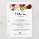 Denna burgundi bröllop välkomna brev är perfekt för ett enkelt bröllop. Utformningen har blommor med rosa, , röd, burgund och insida vattenfärg med grönt bladage. Anpassa fronten med ett välkomstmeddelande till dina gäster och till namn. Anpassa baksidan med schemat för händelser och annan användbar information.
