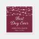 Dessa burgunga, rustiska bröllop-pappra blöjor med en bakgrunds-bakgrund som är försedd med ljus är idealiska för en burgundisk, rustik land, bakgård eller ladugård-bröllopsfest. Anpassa enkelt dessa blöjor med dina uppgifter om bröllop.