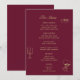 Burgundy och chartreuse illustrerad bröllopsmeny med vintageinspirerad typografi och handritade illustrationer av fikon, en ljusstake och en kerub som håller i ett vinglas.