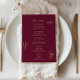 Burgundy Chartreuse Illustrerad Bröllopsmeny Meny