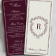 Klassisk djup burgunderröd och elfenbensvit bröllopsmeny – Tidlös elegant mottagningsmeny med klassisk förfinad estetik