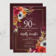 Burgundy Fall Flowers Elegant Skript 90:e födelsed Inbjudningar