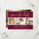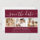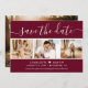 Elegant burgundy bröllop-fotot sparar datumkortet med ett modernt skript och en fotokollage. Anpassa detta kort enkelt med information om bilder och bröllop, inklusive en webbplats för bröllop om tillämpligt.
