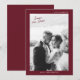 Burgundy fall wedding Save the Date card designed for a romantic autumn celebration. This elegant photo announcement blends modern minimalist style with rich seasonal color, perfect for the timeless bride planning a cozy vineyard or fall garden wedding. Style it with handmade envelopes, warm floral arrangements, and classic calligraphy for a refined autumn wedding stationery suite.