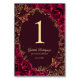 Burgundy gold Quinceanera celebration table number cards. Features, script font, gold butterflies, watercolor roses and tiara. Perfect for an elegant princess style glam celebration. Personalize with your own details. Printed Zazzle invitations or instant download digital printable template.