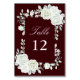 Burgundy Gothic White Roses Wedding Table Numbers Bordsnummer
