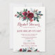 Modern och chic vintern blommigt inbjudningskort för möhippan med söt röd burgundi och vit peony ro bouquet med säsong fir grenar, röda bär och löv och med modernt skript. Observera att bakgrunden färg är redigerbar på båda sidor. Du kan ändra den, och även markera färg efter att ha valt alternativet CUSTOMIZE ytterligare. Perfekt för chic av möhippa för vinter- och jultider i elegant party.