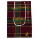 Enhance your holiday gifts with this personalized burgundy, green, and gold plaid Christmas gift bag. Featuring a classic plaid design with “Merry Christmas” and space for a custom name, this bag combines traditional holiday colors with a touch of elegance. Ideal for those who love a timeless Christmas aesthetic, this durable and stylish bag brings a festive and personal touch to each present.