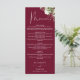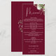 Denna eleganta burgunderfärgade blomster botaniska grönska blad bröllopsmeny kan anpassas med din information i chic typografi med dina monogram initialer på baksidan. Designad av Thisisnotme
