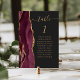 Det moderna kortet för bordsnummer i bröllop som är lämnat kant i eleganten har en burgudröd vattenfärgsagat i gräns som trimmas med faux guld glitter. Ord "bord" visas i handskriftsskriptet guld-färgad på en bakåtriktad bakgrund. Lägg till namnen för de gäster som tilldelats varje bord.
