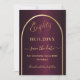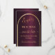 A Spara datumkortet för en 80:e födelsedagsfest. En burgundisk bakgrund, dekorerad med faux guld-båge. Anpassa och lägg till ett datum och ditt namn. Texten: 80 och Spara datumet skrivs med ett stort trendig-handskript i stil.