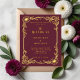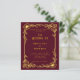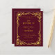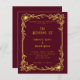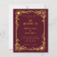 För en elegant, Gatsby stil bröllop. En burgundisk bakgrund som dekorerats med en guldkonst deco stil ram med blommor. Anpassa och lägg till namn och information. 1 lakan = 1 inbjudan tryckt kant till kant.