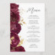 Den här elegantens moderna bröllop-meny har en gräns av burga blommor och guld faux foil löv. Anpassadet kombinerar handskriftsskript för kol-grått och sans serif typsnitt. Blommigt gräns-konstruktionen upprepas på baksidan.