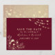 Elegantens burgundi sparar datumkortet med romantisk sträng ljus, ro guld blommigt snöre och modern kalligrafi. Perfekt för höst- eller höstbröllop, gör att den här utformningen blandar rustik charm med en aning lyx. Anpassa med ditt bröllop-datum och namn för ett varmt, snyggt första intryck.