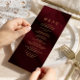 Burgundy & Guld Calligraphy Bröllop Menu Meny