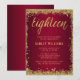 Burgundy Guld Faux Glitter 18:e födelsedagen Inbjudningar