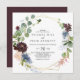Den här burgunska bröllopsinbjudan till guld är en perfekt för ett vinterbröllop. Eleganten Boho-designen har vattenfärgsflottan, rosa och vin-skuggade blommor med konstnärliga, genomträngande detaljer.